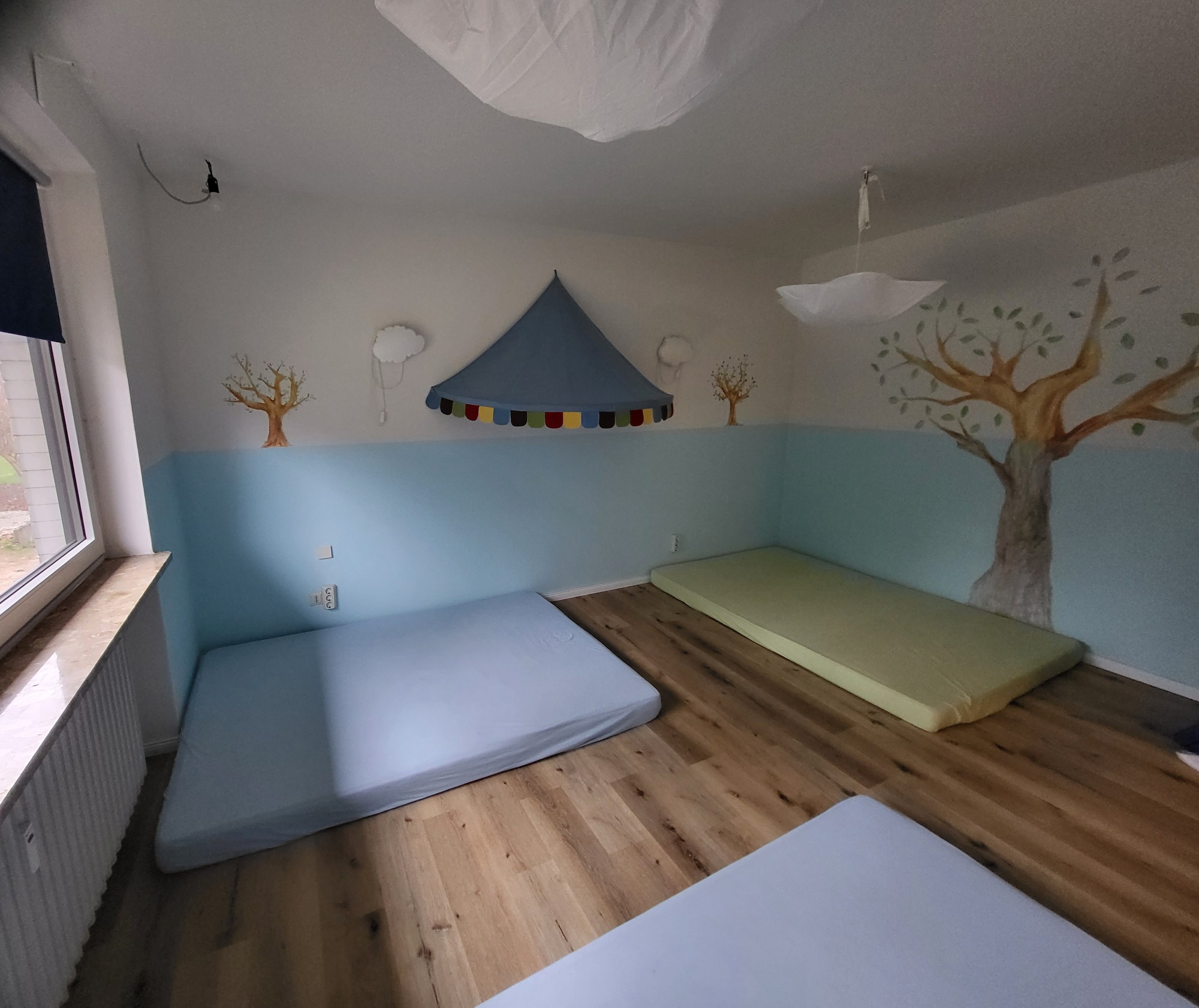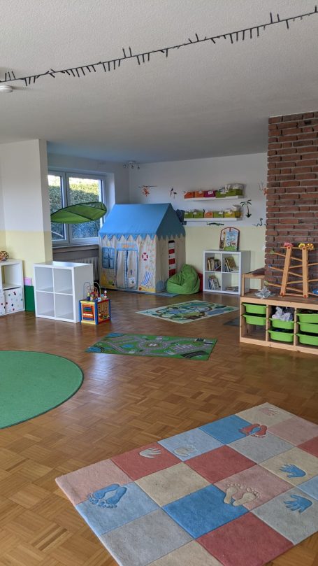Unsere großzügigen Räumlichkeiten umfassen ca. 160 m² und verteilen sich auf mehrere Zimmer, die viel Platz zum Toben und Spielen bieten. Die liebevolle Einrichtung ist auf die Bedürfnisse der Kinder abgestimmt. Sorgfältig ausgewählte Möbel und Spielmaterialien sowie das Farbkonzept unterstützen unsere Auffassung, dass auch der Raum seinen Teil zur kindlichen Entwicklung und Erziehung beiträgt.